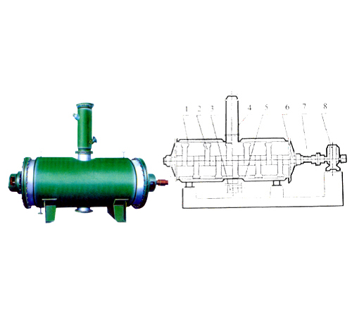 | 【真空耙式干燥機】 具有結構簡單,操作方便,使用周期長,性能穩定可靠,蒸汽耗量小,適用性能強,產品質量好,特別適用于不耐高溫、易燃、調溫下易氧化的膏狀物料的干燥,該機經用戶長期使用證明是一良好的干燥設備。原理:被干燥物料從殼體上方正中間加入,在不斷正反轉動的耙齒的攪拌下,物料軸向來回走動,與殼體內壁接觸的表面不斷更新,受到蒸汽的間接加熱,耙齒的均勻攪拌,粉碎棒的粉碎,使物料表面水分更有利的排出,氣化的水分經干式除塵器、濕式除塵器、冷凝器,從真空泵出口處放空。結構:真空耙式干燥機的主要部件